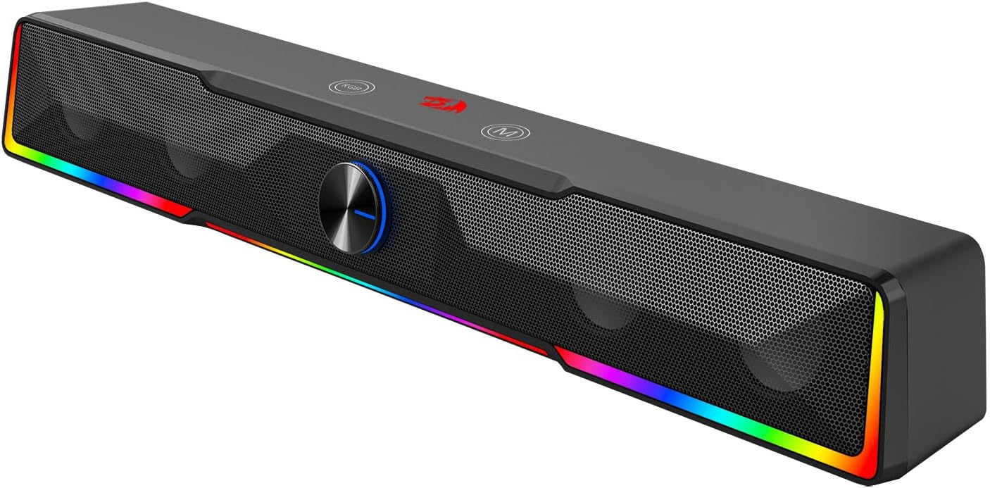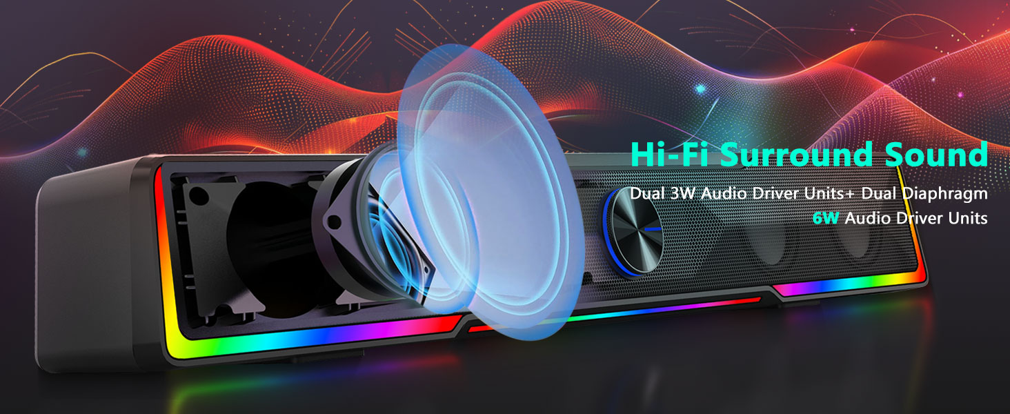 शक्तिशाली स्टेरियो ड्राइभरहरूसँग सुसज्जित, ब्ल्याक GS516 ब्लुटुथ/USB वायर्ड जडान साउन्डबार भोल्युम नब कम्प्युटर स्पिकरले स्पष्ट भोकल, विस्तृत मिडरेन्ज, र परिष्कृत बास प्रतिक्रियाको साथ सन्तुलित ध्वनि प्रदान गर्दछ।