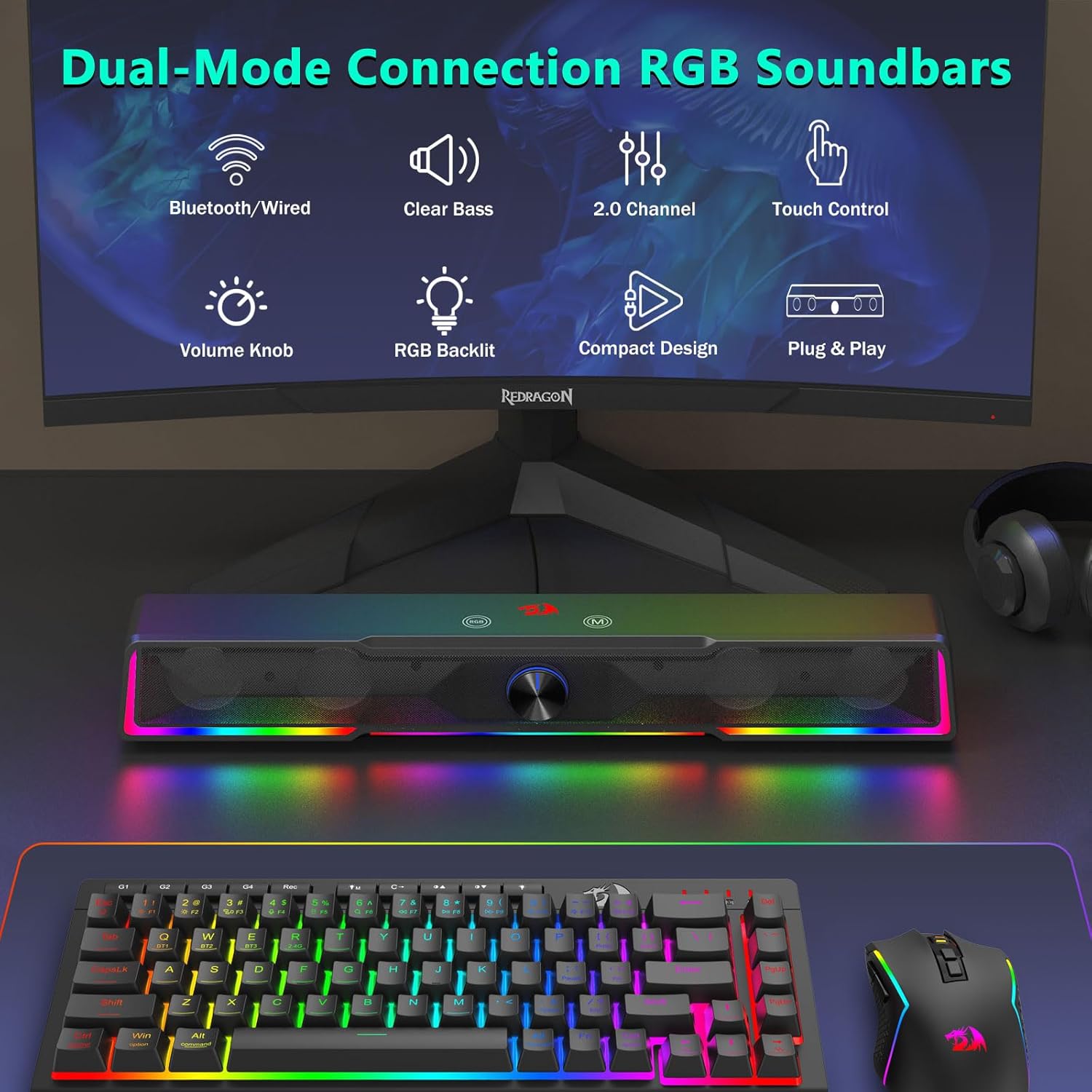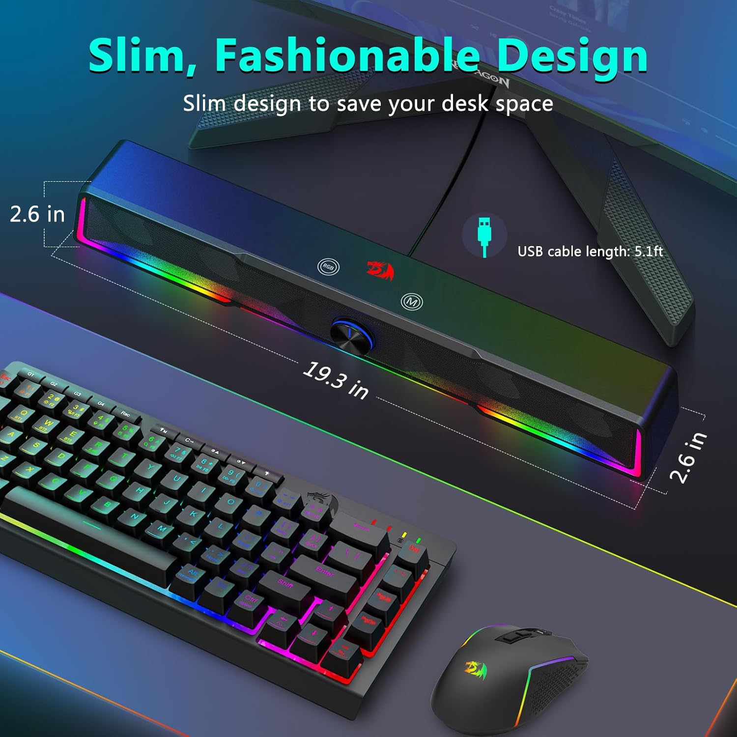 एकीकृत साउन्डबार संरचनाले स्पिकरलाई डेस्क क्षेत्रमा समान रूपमा ध्वनि वितरण गर्न अनुमति दिन्छ, परम्परागत कम्प्याक्ट स्पिकरहरूको तुलनामा फराकिलो अडियो क्षेत्र सिर्जना गर्दछ। यो डिजाइनले संगीत, चलचित्र, गेमिङ, र अनलाइन बैठकहरूको लागि सुन्ने अनुभवहरू बढाउँछ।