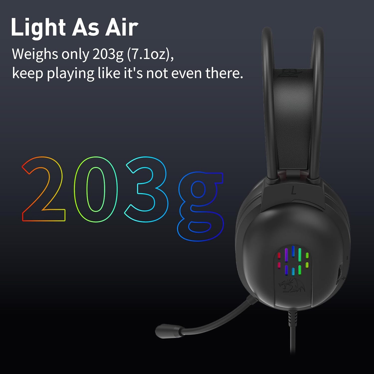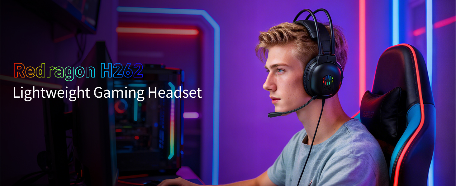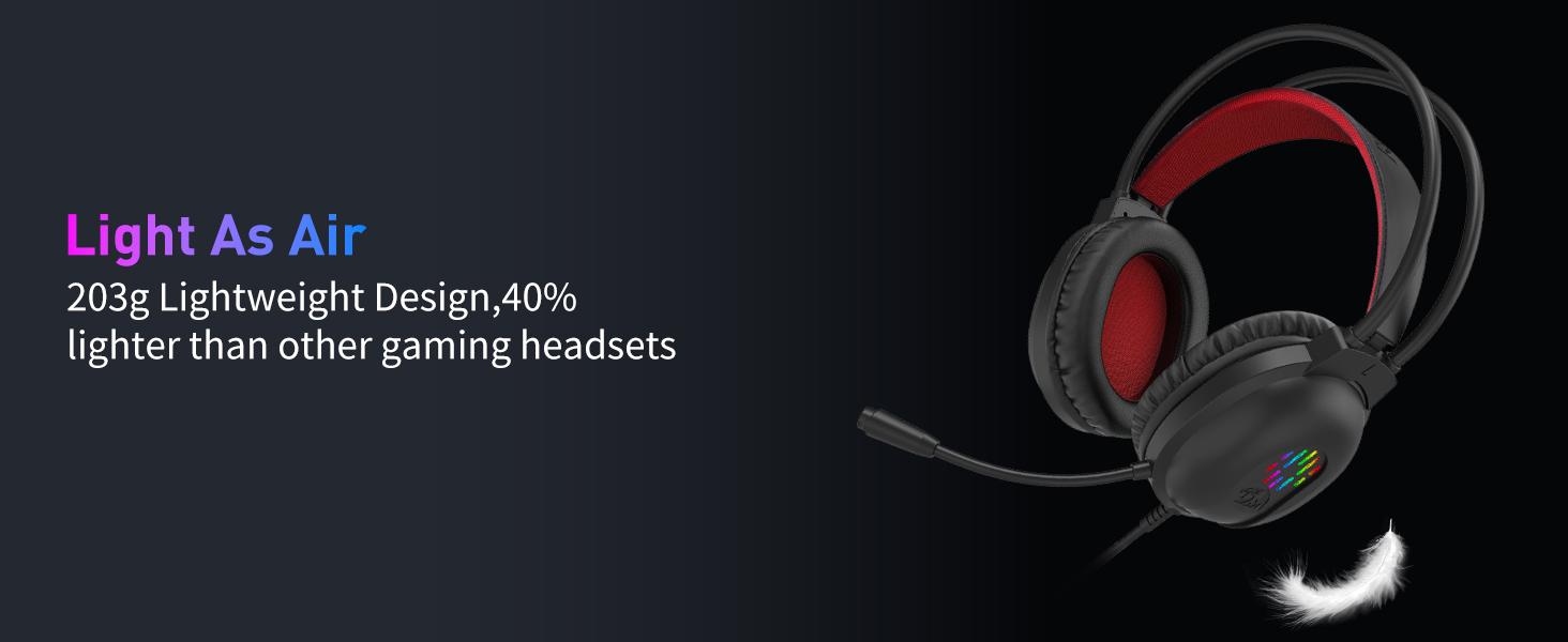हल्का तौल निर्माण र एर्गोनोमिक कान कुशनहरूले कालो H262 वायर्ड गेमिङ हेडसेटलाई माइक्रोफोनको साथ विस्तारित गेमिङ सत्रहरूको लागि सहज बनाउँछ।