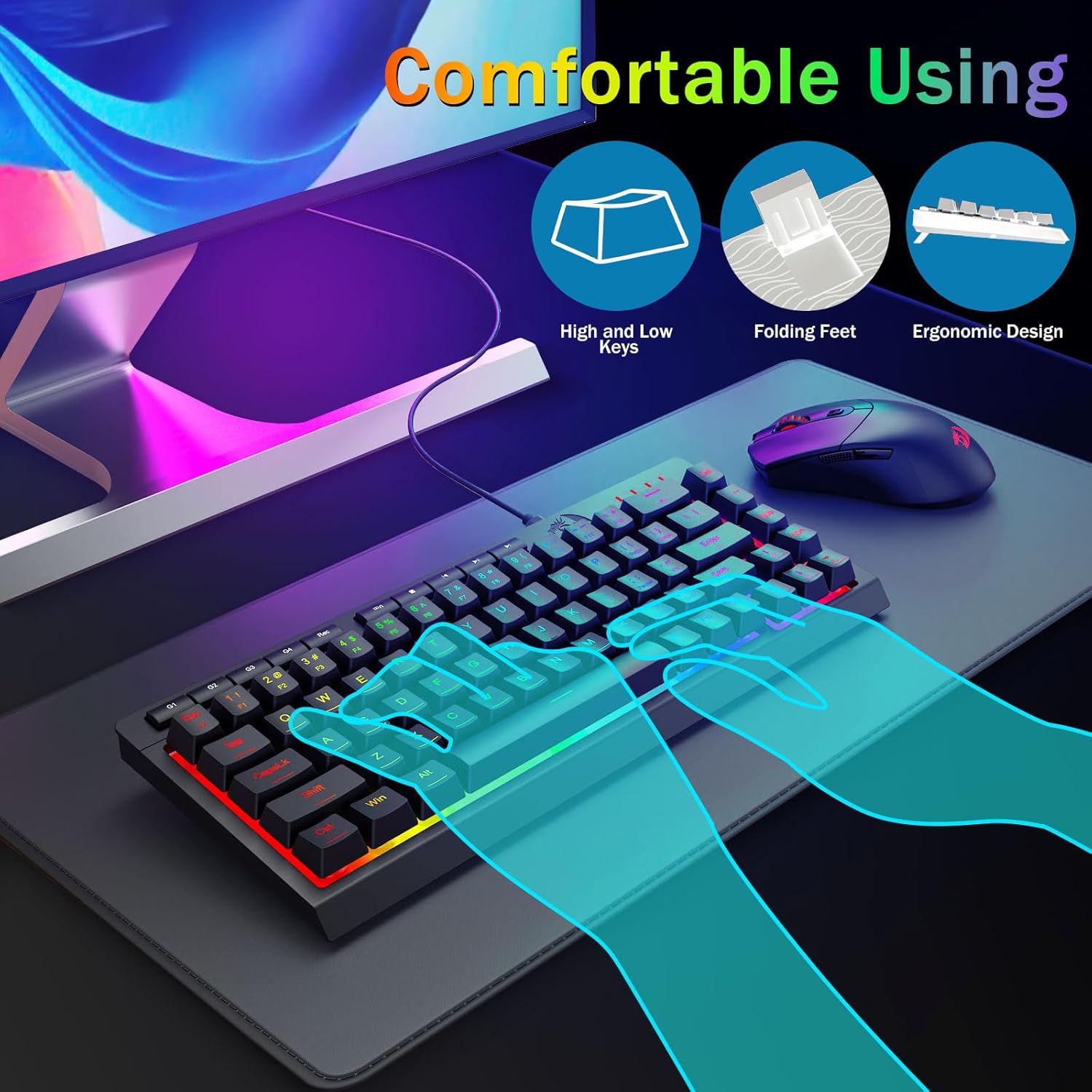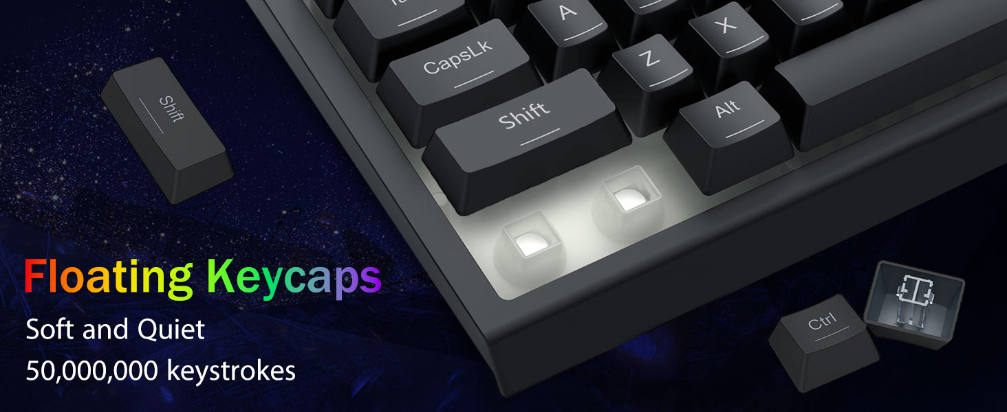 साँचो RGB ब्याकलाइट- अफिस वातावरण र गेमिङ सेटअपहरूको लागि आदर्श, हाम्रो कानाफूसी-शान्त गेमिङ स्विचको साथ नजिकको मौन सञ्चालनको अनुभव लिनुहोस्। क्लासिक ज्वालामुखी स्विच संरचनाले स्थायित्व र 50 मिलियन कीस्ट्रोकहरूको प्रभावशाली जीवनकाल सुनिश्चित गर्दछ।