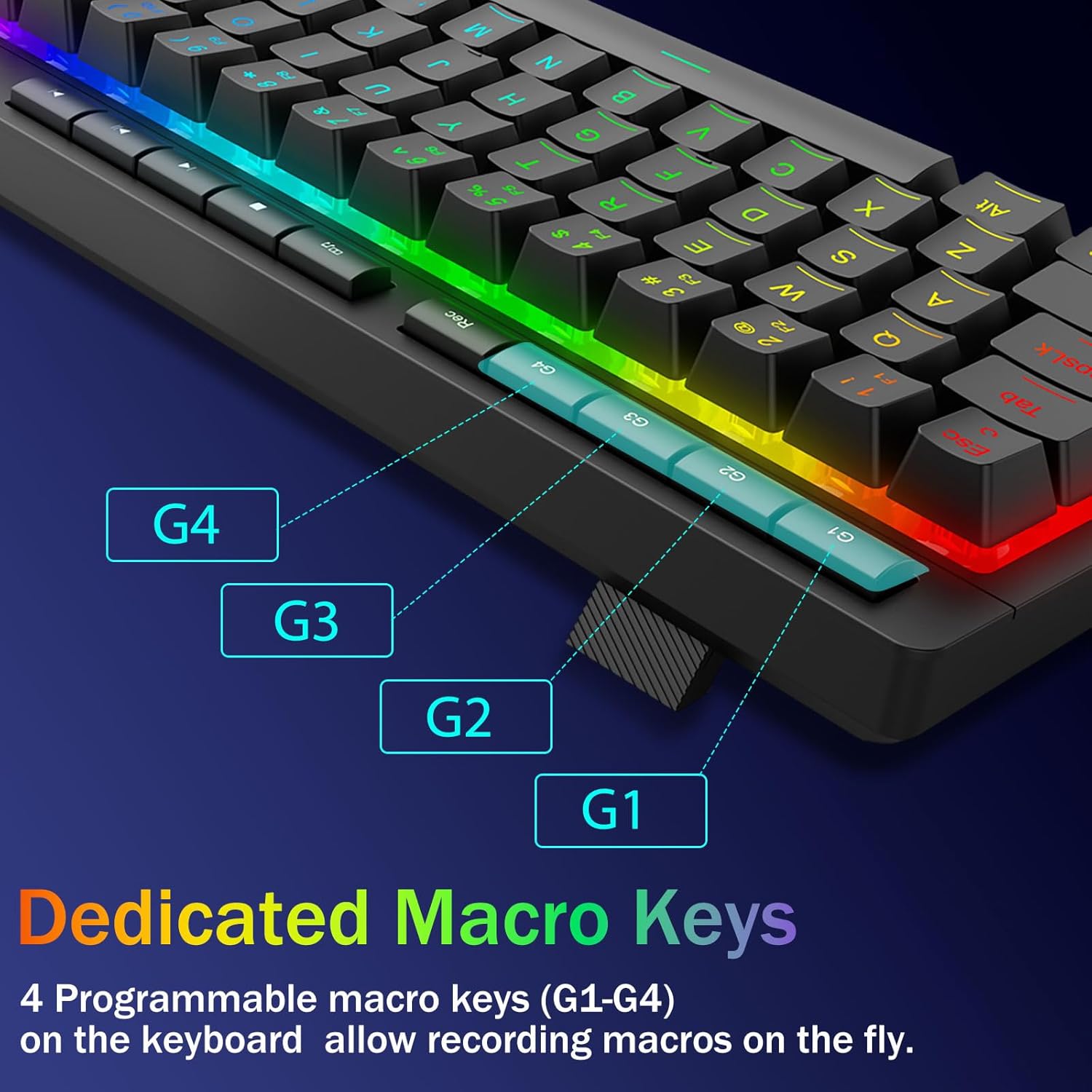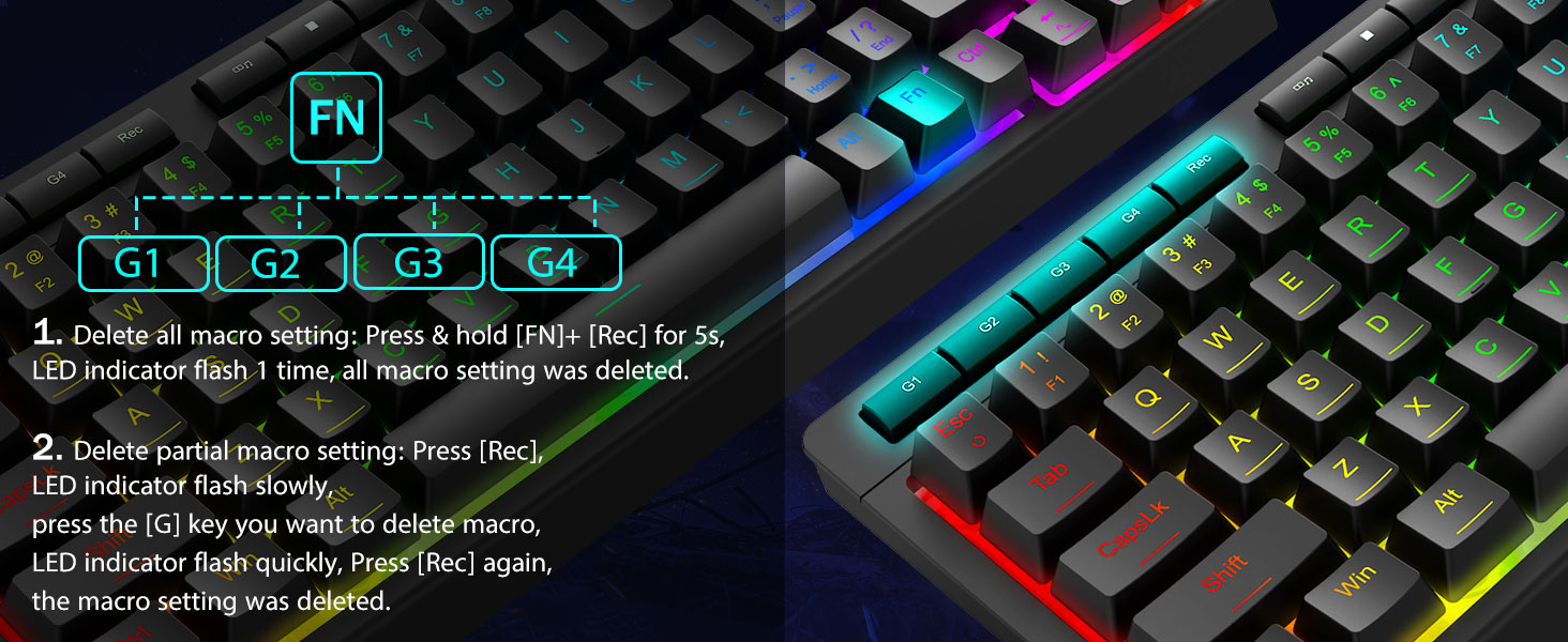 4 अनबोर्ड म्याक्रो कुञ्जीहरू- 4 अनबोर्ड म्याक्रो कुञ्जीहरू (G1~G4) प्रोग्रामयोग्य छन् र कुनै अतिरिक्त सफ्टवेयर बिना उडानमा काम गर्दछ। कुञ्जीहरू सम्पादन गर्न सजिलो छन् र विभिन्न म्याक्रोहरू प्रदर्शन गर्न सक्छन्।