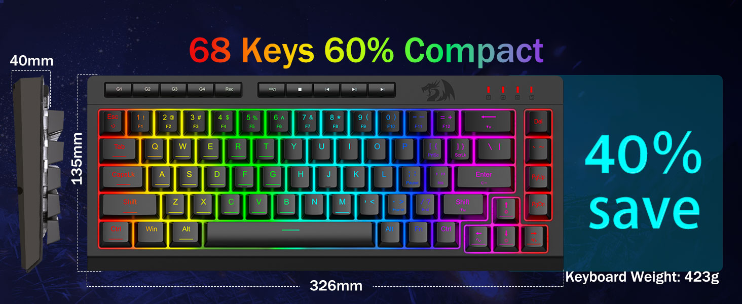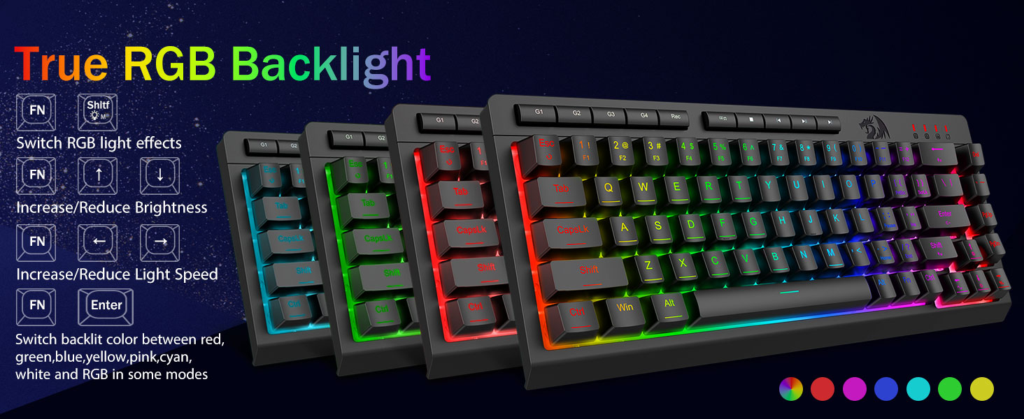 साँचो RGB ब्याकलाइट- पूर्ण गतिशील आरजीबी ब्याकलाइटिङले अनगिन्ती प्रकाश सम्भावनाहरू मात्र तपाईंको कल्पनामा सीमित गर्न अनुमति दिन्छ। किबोर्ड 8 पूर्व-सेट प्रकाश मोड र अनुकूलन मोडहरूको लागि थप 6 स्लटहरूसँग आउँछ। बोर्डले उज्यालो नियन्त्रणको लागि पनि अनुमति दिन्छ जुन धेरै उज्यालो देखि पूर्ण रूपमा बन्द सम्मको दायरा हो यदि तपाईंलाई प्रकाशको आवश्यकता छैन भने।