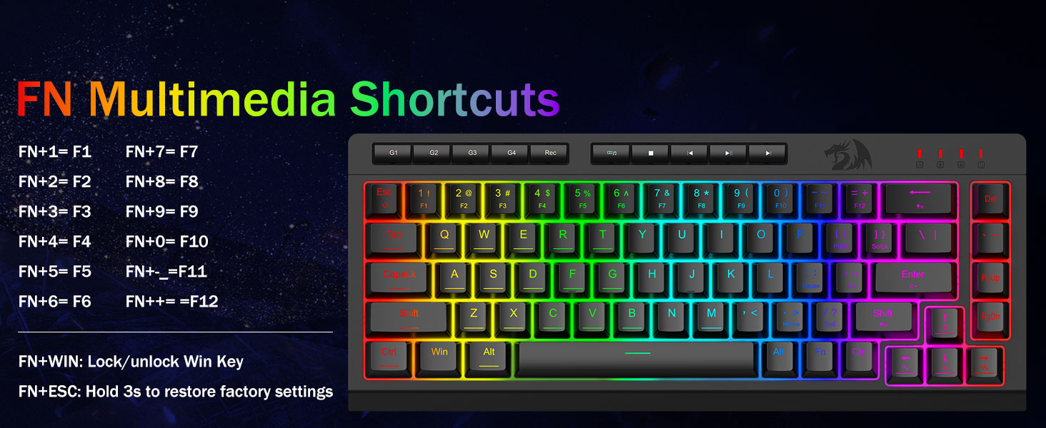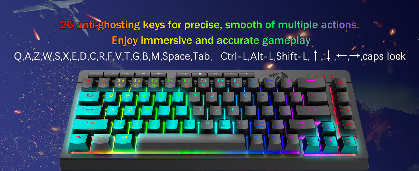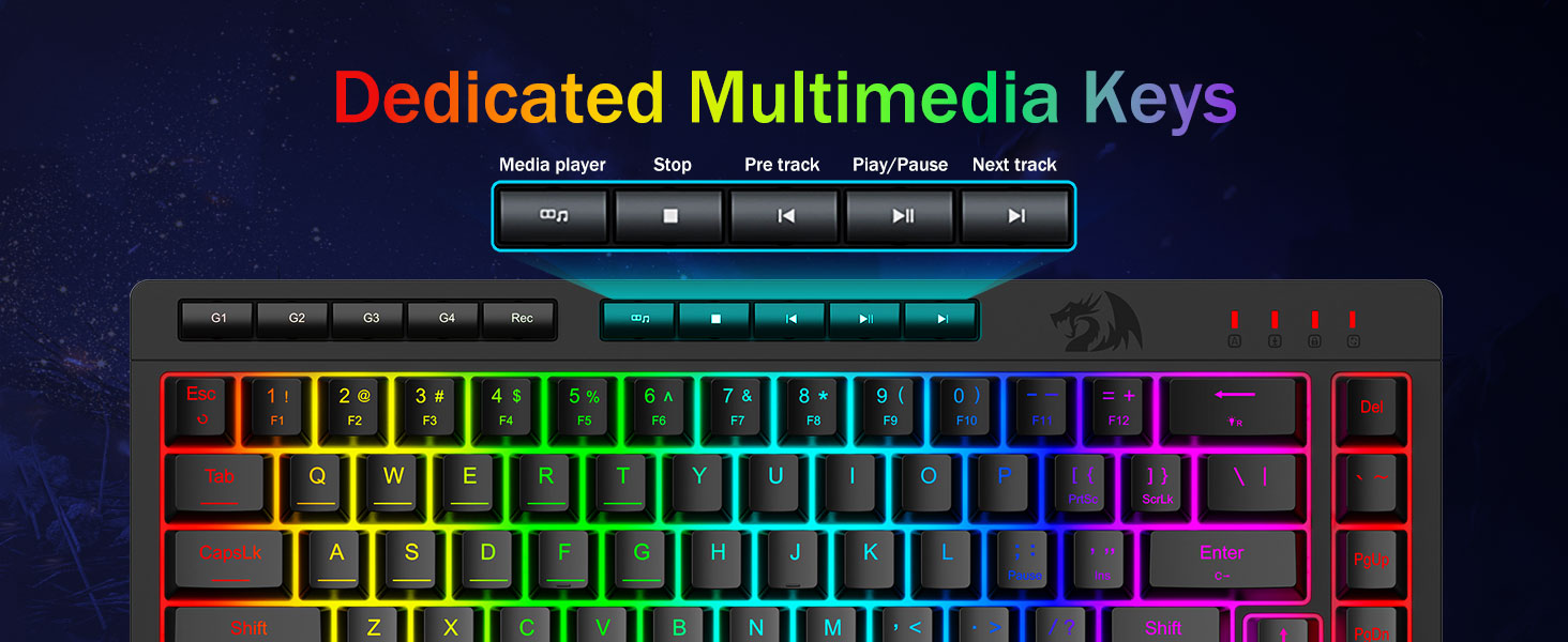 26 एन्टी-घोस्ट कुञ्जीहरू र समर्पित मिडिया नियन्त्रणहरू- एन्टी-घोस्टिङ कुञ्जीहरू (अण्डरस्कोरसहितको कुञ्जीहरू) फिचर गर्दै जुन तपाईंले चाहनुभएको तरिकाले छिटो र सटीक खेल प्रतिक्रियाहरूको लागि 26 कुञ्जीहरूलाई एकै साथ काम गर्न अनुमति दिन्छ। समर्पित मिडिया नियन्त्रणहरूले तपाइँलाई किबोर्डबाट मल्टिमिडिया प्ले गर्न, पज गर्न र छोड्न दिन्छ ताकि तपाइँको गेमप्ले सहज र निर्बाध होस्।