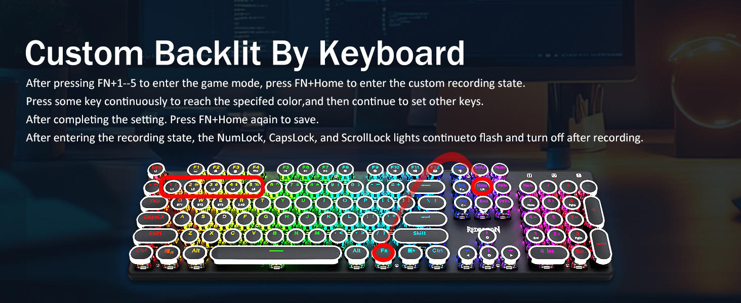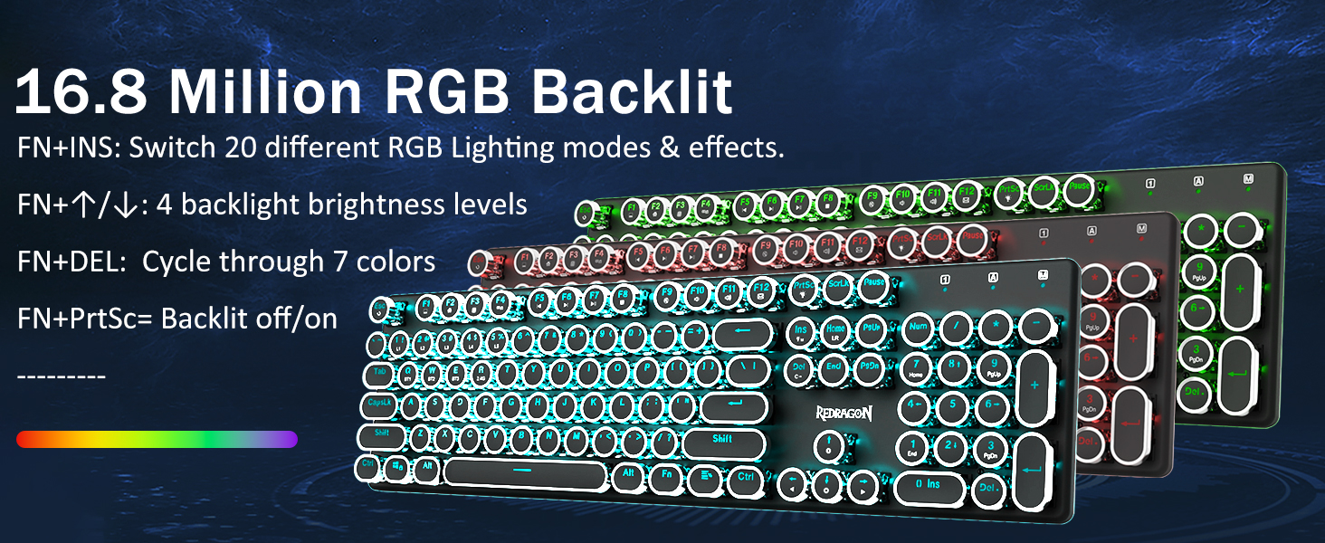 𝗩𝗶𝗯𝗿𝗮𝗻𝘁 𝗚𝗿𝗼𝗼𝘃𝘆 𝗥𝗚𝗕 -20 प्रिसेट ब्याकलाइटिङ मोडहरू किबोर्ड वा सफ्टवेयरद्वारा छनौट गर्न स्वतन्त्र छन्। 4 चमक स्तर र प्रवाह गति पनि बोर्ड मा समायोज्य छ। कुनै पनि प्ले लागि आफ्नो मनपर्ने मोड चयन गर्नुहोस्। 7 विभिन्न ठोस रंग समावेश: रातो, हरियो, निलो, पहेंलो, बैजनी, सियान, सेतो। प्रत्येक कुञ्जी तपाईले चाहानु भएको फरक रंगमा अनुकूलित गर्न सकिन्छ।