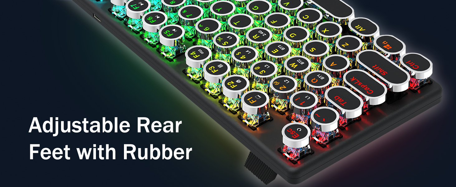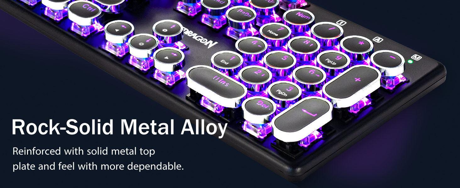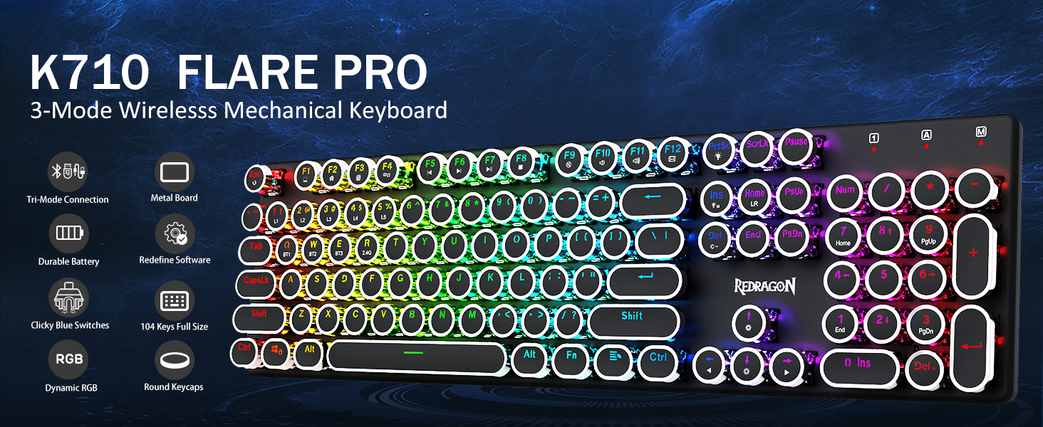 𝗥𝗲𝘁𝗿𝗼 𝗧𝘆𝗽𝗲𝘄𝗿𝗶𝘁𝗲𝗿 𝗦𝘁𝘆𝗹𝗲 𝘄𝗶𝘁 𝗠𝗲𝗰𝗵𝗮𝗻𝗶𝗰𝗮𝗹 𝗞𝗲𝘆𝘀 -अपग्रेड गरिएको FLARE PRO संस्करणले समान ट्याङ्की-ठोस धातु सामग्री प्रयोग गरिरहन्छ। प्रिमियम टाइपिङ अनुभवको लागि किबोर्डलाई डेस्कमा स्थिर र सुन्दर राख्नुहोस्। K710 किबोर्डले 104-कुञ्जी एन्टी-गोस्टिङ टेक्नोलोजीलाई समर्थन गर्दछ, धेरै कुञ्जीहरूलाई एकै समयमा बिना विवाद थिच्न अनुमति दिन्छ।