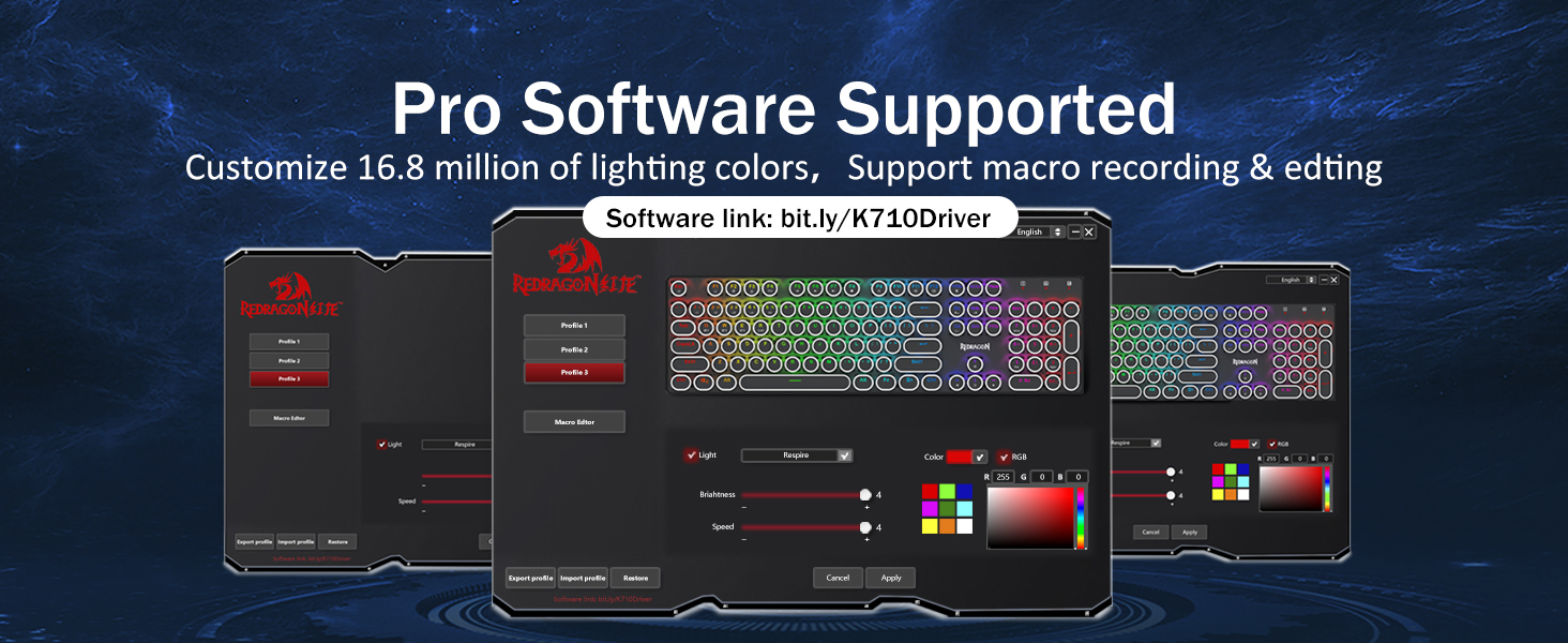 𝗣𝗿𝗼 𝗦𝗼𝗳𝘁𝘄𝗮𝗿𝗲 𝗦𝘂𝗽𝗽𝗼𝗿𝘁𝗲𝗱 -आफ्नो नयाँ मोड र प्रभावहरू डिजाइन गर्न उपलब्ध सफ्टवेयर प्रयोग गरेर आफ्नो विकल्पहरू विस्तार गर्नुहोस्। धेरै कुशल काम र गेमिङका लागि विभिन्न कीबाइन्डिङ वा सर्टकटहरूसँग म्याक्रोहरू।