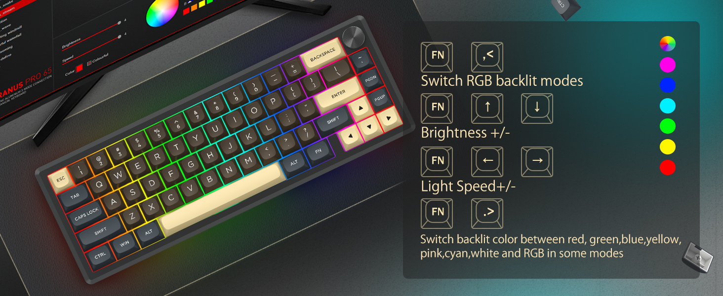 Keycap सामग्री: ABS वा PBT (कन्फिगरेसनमा निर्भर गर्दै)