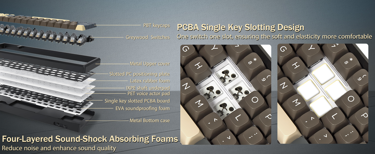 कीक्यापहरू स्थायित्व र सुसंगत बनावटको लागि डिजाइन गरिएको हो, समयसँगै टाइपिङको सहज अनुभव कायम राख्न मद्दत गर्दछ। किबोर्ड फ्रेमले प्रयोगको समयमा स्थिरता प्रदान गर्दछ, टाइपिङ वा गेमिङ सत्रहरूमा आन्दोलन कम गर्दछ।