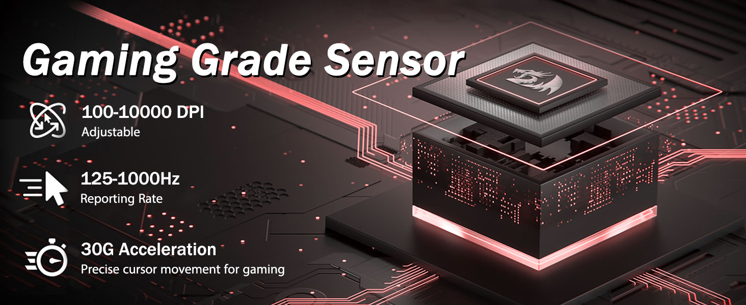 5 समायोज्य DPI स्तर र 4 मतदान दर- M719 माउस 5 DPI स्तरहरू उपलब्ध भएको डिजाइन गरिएको छ: DPI 400/800/1600/2400/4000। विभिन्न खेल आवश्यकताहरू बीच स्विच गर्न सजिलो। तपाईंको सबै आवश्यकताहरू पूरा गर्न सफ्टवेयर मार्फत ±100 देखि 100 देखि 10000 सम्म DPI लाई स्वतन्त्र रूपमा समायोजन गर्न सकिन्छ। 4 मतदान दर समायोज्य छ: 125Hz/250Hz/500Hz/1000Hz, उच्च मतदान दरले सहज र छिटो आन्दोलन सुनिश्चित गर्दछ।