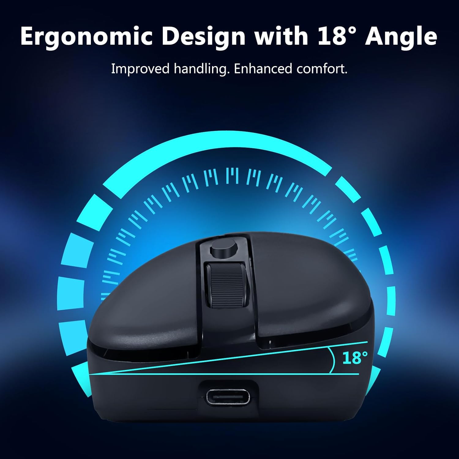 CHUANGQUAN Black M818 Wireless 24,000 DPI, Tri-Mode 2.4G गेमिङ माउसले सटीक ट्र्याकिङ, लचिलो कनेक्टिभिटी, र सहज नियन्त्रण प्रदान गर्दछ, गति, सटीकता, र सिमलेस बहु-उपकरण प्रदर्शन खोज्ने गेमरहरू र पेशेवरहरूको लागि आदर्श।