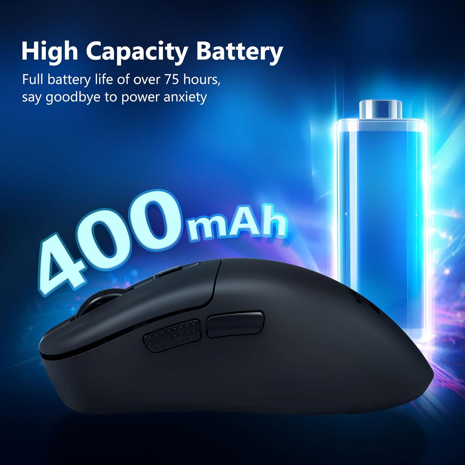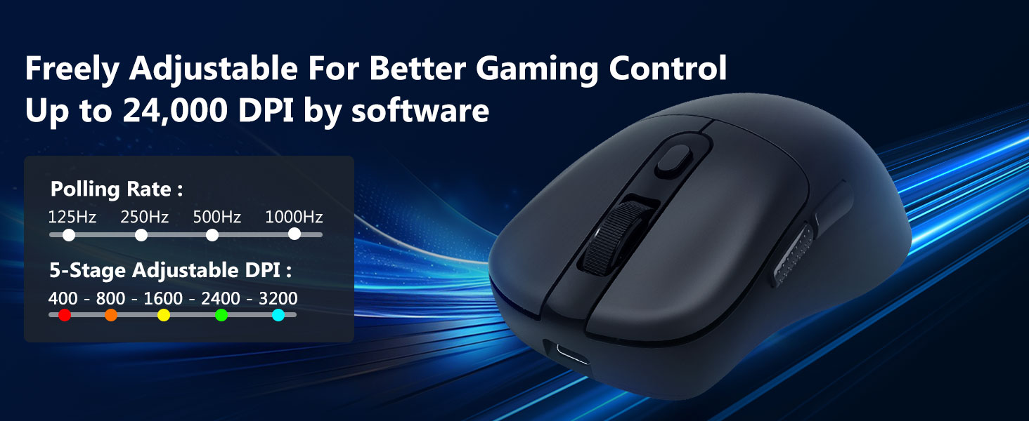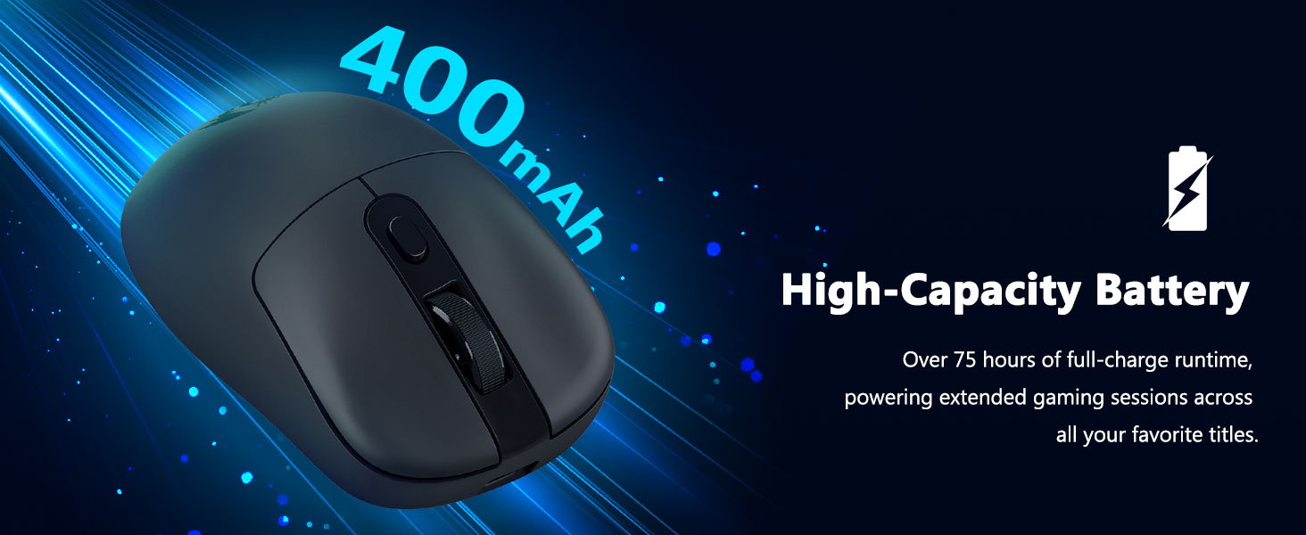 2.4GHz वायरलेस मोडले स्थिर र उत्तरदायी इनपुट सुनिश्चित गर्दछ, ढिलाइ घटाउँछ र द्रुत गतिका गतिविधिहरूमा निरन्तर नियन्त्रण कायम राख्छ।
