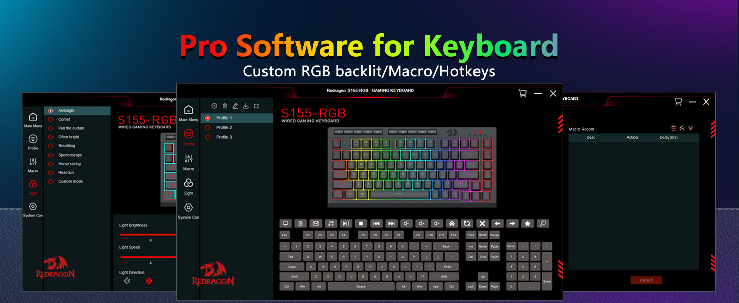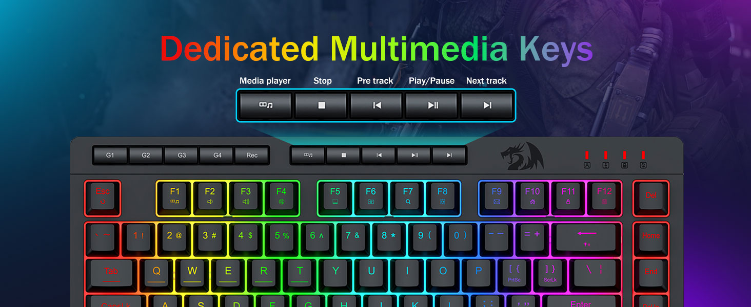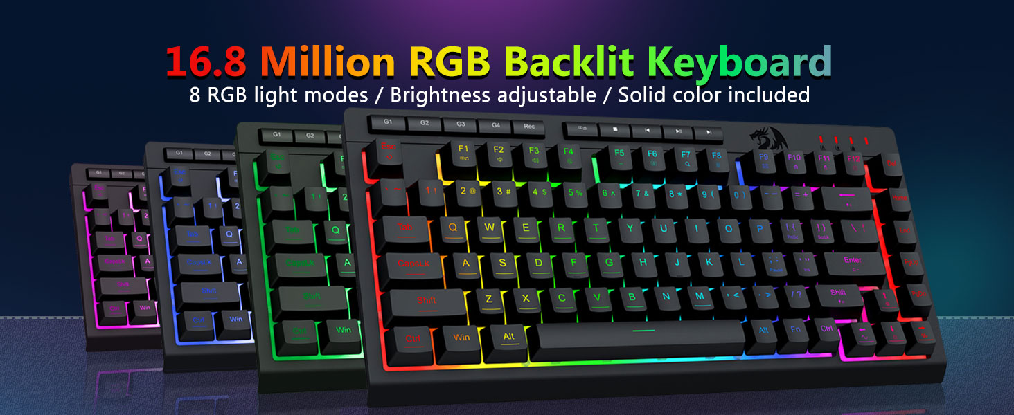 【RGB गेमिङ किबोर्ड र माउस】गेमिङ किबोर्डमा छनोट गर्न ८ RGB लाइटिङ मोडहरू छन् र गेमिङ माउसको बीचमा स्विच गर्नको लागि ८ लाइटिङ प्रभावहरू छन्, र किबोर्डलाई ४ स्तरको गति र उज्यालोको लागि तपाईंको प्राथमिकता अनुरूप समायोजन गर्न सकिन्छ। कीक्यापहरूले स्पष्ट समान ब्याकलाइटिङ प्रस्ताव गर्दछ। चाहे सेट एकल प्रकाश हो, प्रकाश प्रभावहरू परिवर्तन गर्नुहोस् वा कुनै पनि प्रकाश छैन, Redragon गेमिङ किबोर्ड र माउसले तपाईंको आवश्यकताहरू पूरा गर्नेछ!