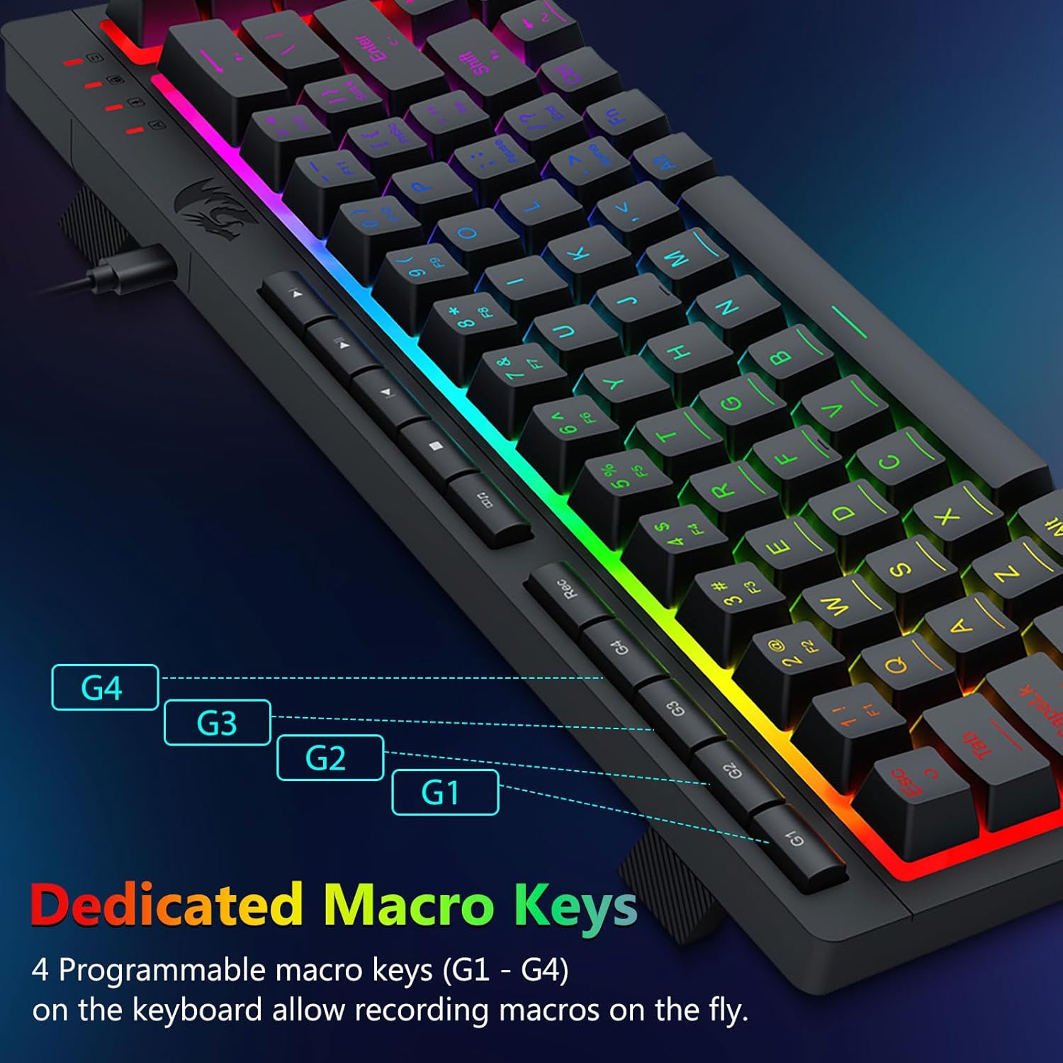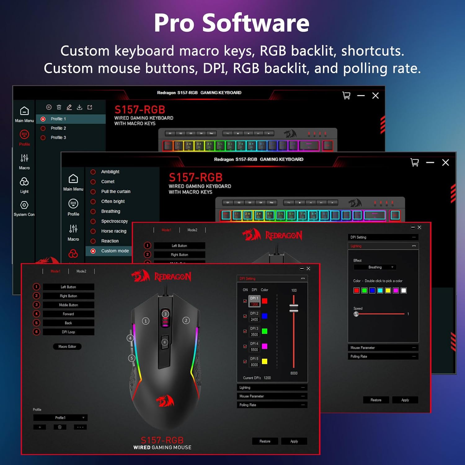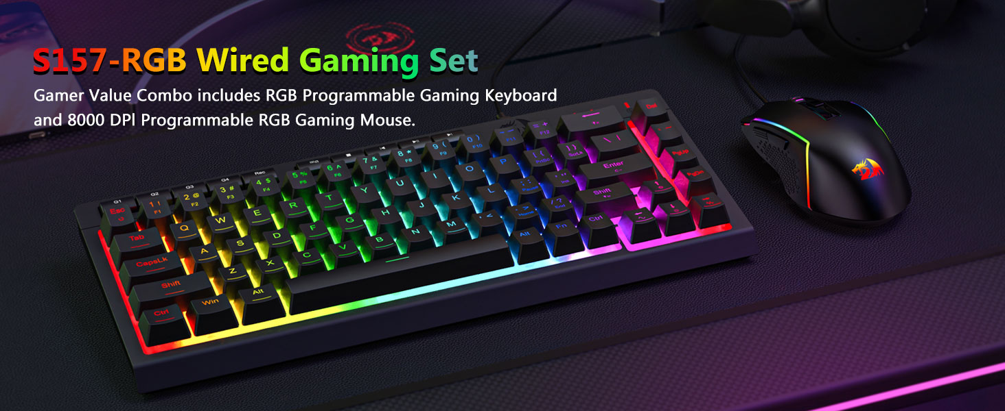 कालो S157 RGB ब्याकलिट वायर्ड गेमिङ किबोर्ड र माउस कम्बोले विभिन्न परिदृश्यहरूमा लगातार प्रदर्शन प्रदान गर्दछ। किबोर्डले सही कीस्ट्रोकहरूलाई समर्थन गर्दछ, जबकि माउसले नेभिगेसन र गेमप्लेको लागि भरपर्दो ट्र्याकिङ प्रदान गर्दछ।