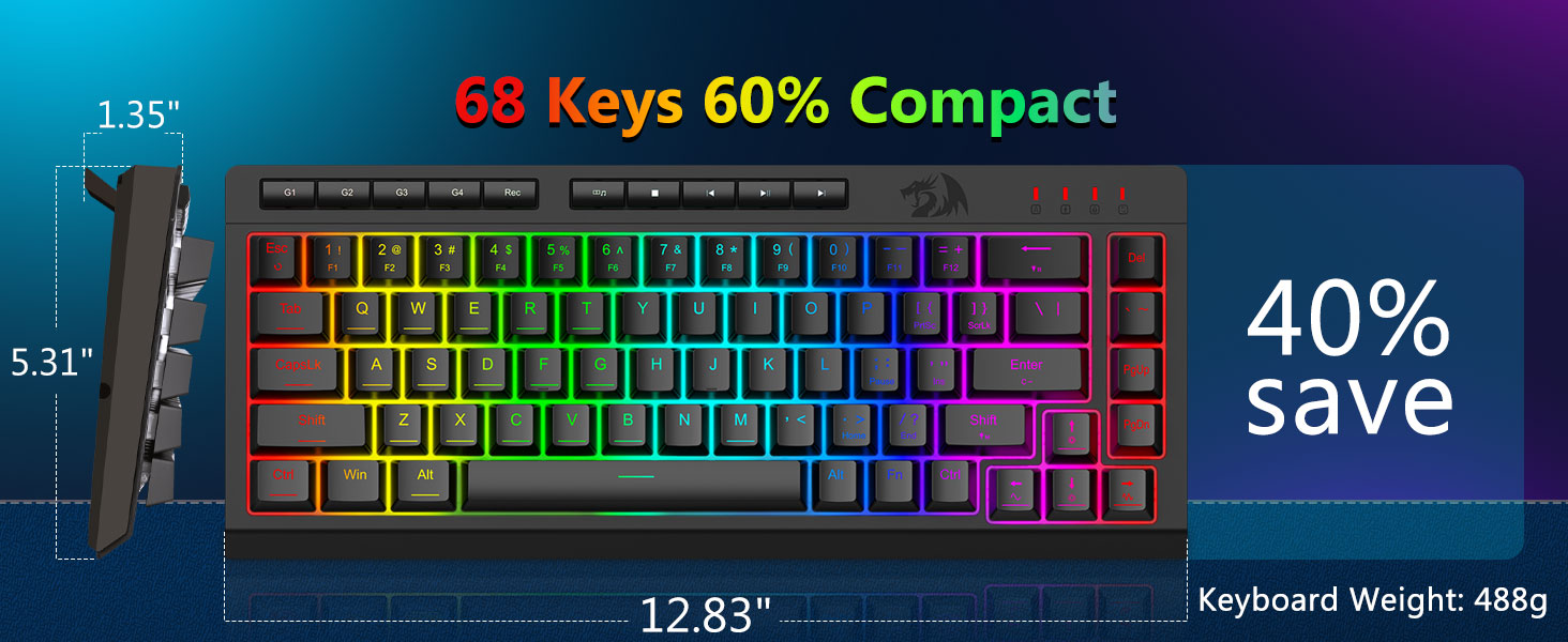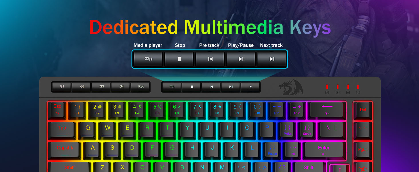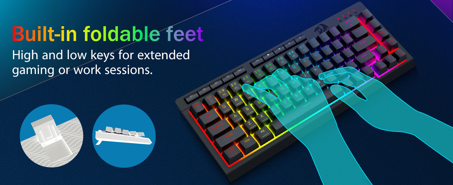 RGB प्रकाशले कम प्रकाश अवस्थाहरूमा उपयोगिता बढाउँछ, प्रयोगकर्ताहरूलाई एकाग्रतालाई असर नगरी सजिलैसँग कुञ्जीहरू पत्ता लगाउन अनुमति दिन्छ।
