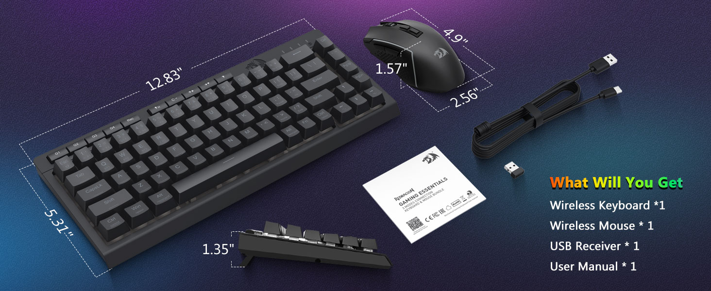 ब्ल्याक S157 वायरलेस गेमिङ किबोर्ड र माउस कम्बो, रेड्रागनबाट, पेशेवर निर्माता चुआङ्क्वानद्वारा कुशलतापूर्वक तयार पारिएको, तपाइँको गेमिङ स्टेशनलाई प्रदर्शन र शैली दुवैमा उचाल्न डिजाइन गरिएको हो। किबोर्डले एक सन्तोषजनक स्पर्श प्रतिक्रिया प्रदान गर्दछ, तीव्र गेमिङ म्याराथन र विस्तारित टाइपिङ सत्रहरू दुवैको लागि आदर्श हो, जबकि माउसले उत्कृष्ट इन-गेम नियन्त्रणको लागि यसको समायोज्य DPI सेटिङहरूसँग पिनपोइन्ट सटीकता सुनिश्चित गर्दछ। दुबै कम्पोनेन्टहरू मनमोहक RGB ब्याकलाइटिङसँग सुसज्जित छन्, जसले तपाईंलाई रङ र गतिशील प्रभावहरूको स्पेक्ट्रमको साथ आफ्नो सेटअपको वातावरणलाई अनुकूलित गर्न अनुमति दिन्छ।