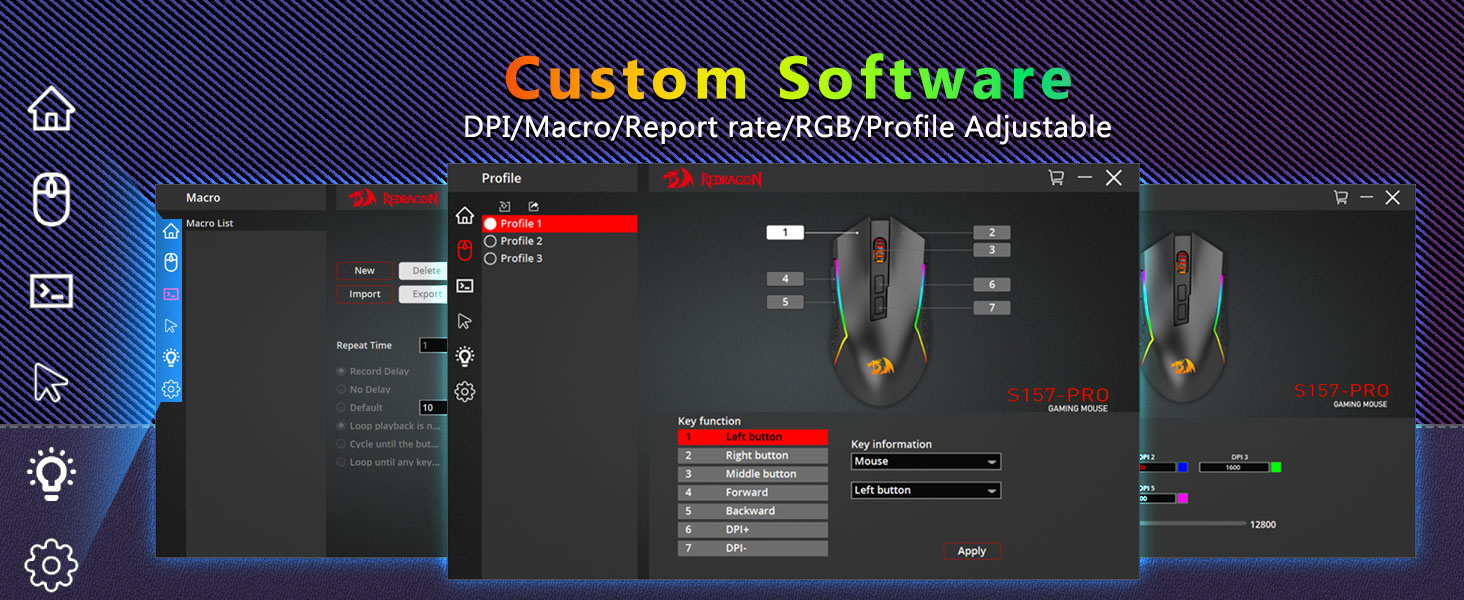 अधिकतम 12800 DPI समायोज्य- 5 अन-बोर्ड DPI स्तरहरूसँग गियर गरिएको छ जसले तपाइँको माउस चालहरू प्रत्येक पिनपोइन्ट स्थानमा दर्ता गर्न अनुमति दिन्छ। 5 DPI स्तरहरू सफ्टवेयरको साथ DIY मा नि:शुल्क छन्, गेमरहरूलाई खेलमा द्रुत रूपमा स्विच गर्न सक्षम पार्नुहोस्।