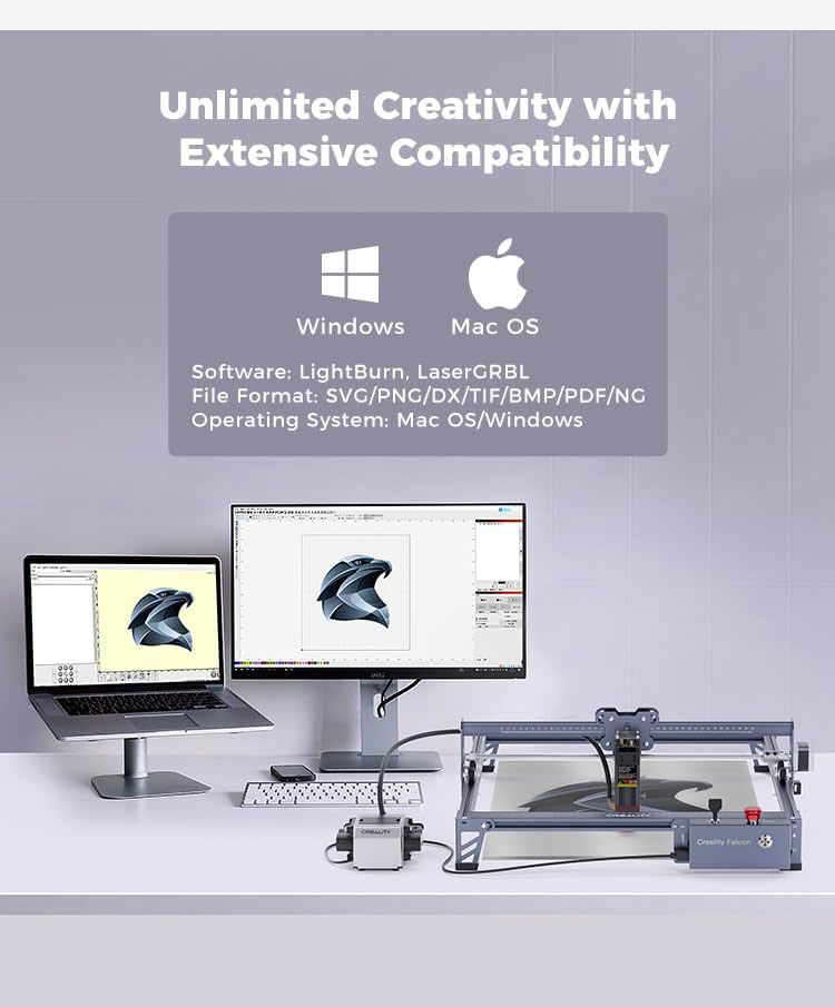 · 【कम्प्याटिबिलिटी विवरणहरूसँग बलियो र टिकाउ】एनोडाइज्ड एल्युमिनियम मिश्र, L-आकारको सिलिकन फुटप्याडहरू, र 8mm स्टिल रेल द्वारा सटीक र सहज आन्दोलन सुनिश्चित गरिन्छ। बिल्ट-इन लेभलरले चिप्लनबाट जोगाउँछ र लेजर नक्काशी उपकरण सही रूपमा राखिएको छ कि छैन भनेर निर्धारण गर्न क्यालिब्रेट गरिन्छ। प्याकेज प्राप्त गरेपछि, तपाईंले यसलाई आफैं स्थापना गर्नुपर्छ; यसलाई पूरा गर्न लगभग 10 मिनेट लाग्छ। क्रिएलिटी फाल्कन लेजर एनग्रेभर अनुभवी लेजर प्रयोगकर्ताका लागि लाइटबर्न र नयाँ लेजर प्रयोगकर्ताका लागि लेजरजीआरबीएल सहित विभिन्न उत्कीर्ण कार्यक्रमहरूसँग उपयुक्त छ।