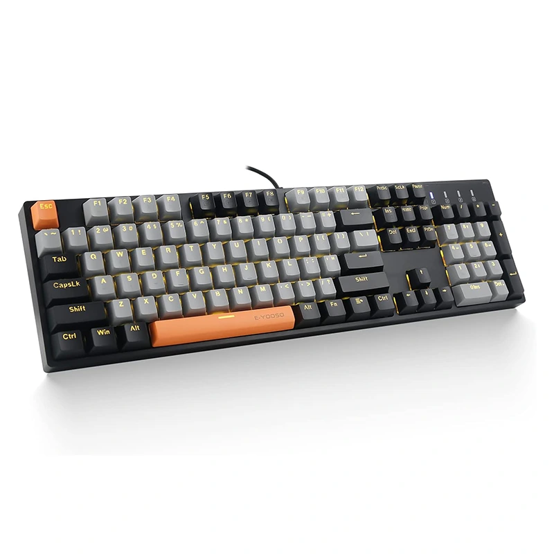 E-YOOSO Z-14 104 कुञ्जी पूर्ण आकारको ठोस पहेंलो ब्याकलिट मेकानिकल गेमिङ किबोर्ड रातो स्विचको साथ। राम्रो बनावट, किफायती मूल्य, खेलहरू खेल्न र सँगै काम गर्न सक्छ।
