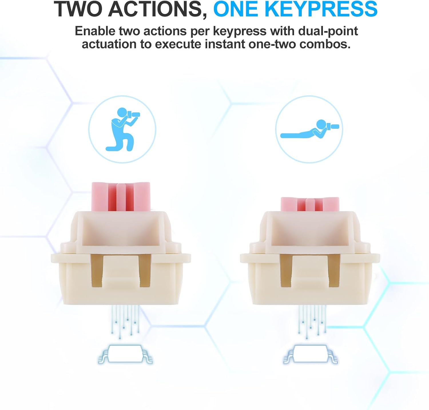 द्रुत ट्रिगर कार्यक्षमताले छिटो कुञ्जी रिसेटहरू सक्षम पारेर प्रतिक्रियाशीलता बढाउँछ, जुन प्रतिस्पर्धात्मक गेमिङका लागि विशेष रूपमा उपयोगी छ। यो सुविधाले खेलाडीहरूलाई पूर्ण कुञ्जी यात्राको प्रतीक्षा नगरी थप प्रभावकारी रूपमा दोहोर्याइएको कार्यहरू प्रदर्शन गर्न अनुमति दिन्छ।
