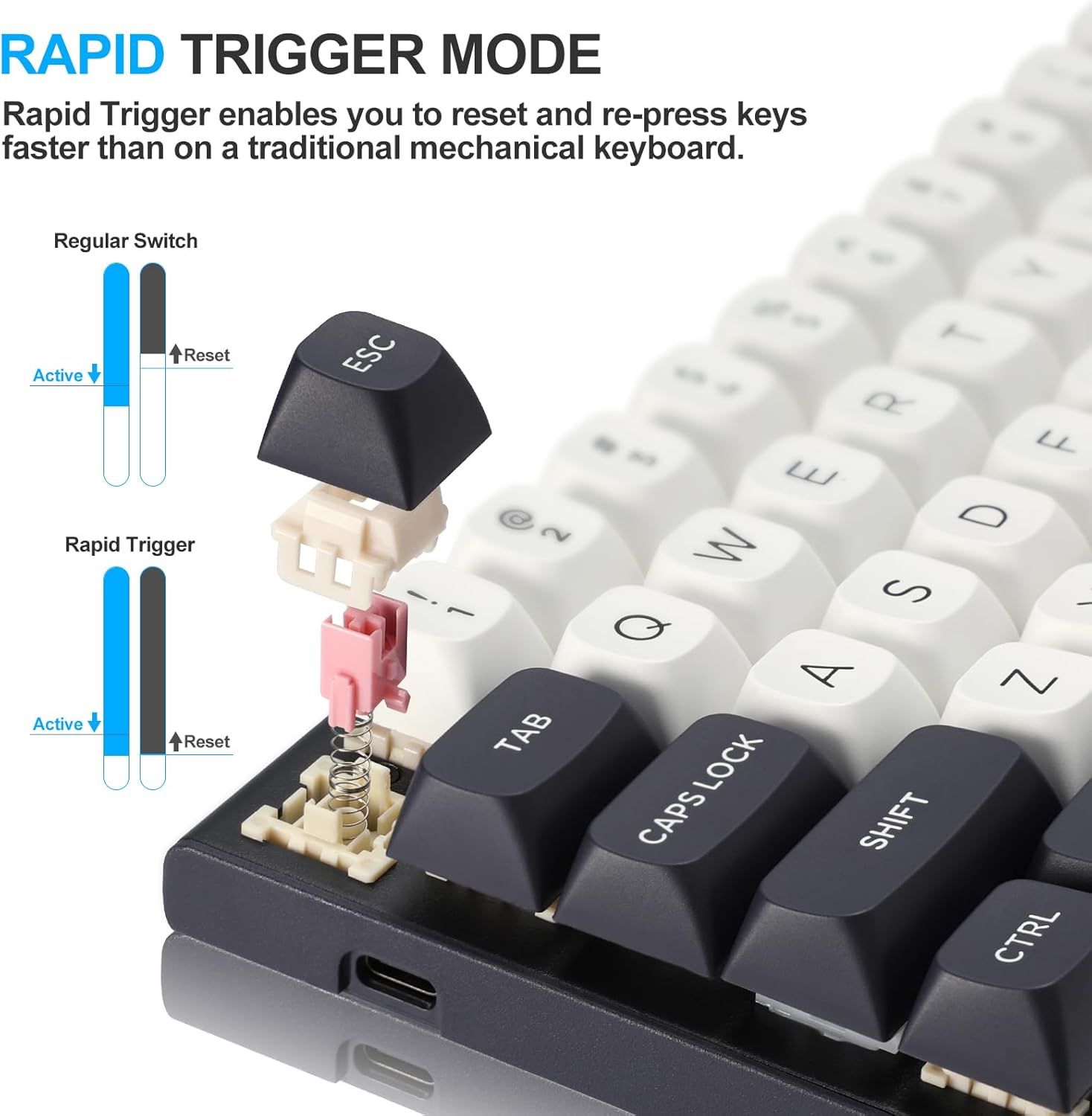 कम्प्याक्ट गेमिङ किबोर्डहरू डेस्क स्पेस, स्पीड र सटीकतालाई महत्त्व दिने खेलाडीहरू बीच झन्झन् लोकप्रिय भएका छन्। सेतो/निलो-कालो K701 र्यापिड ट्रिगर 60% तारयुक्त चुम्बकीय स्विच मेकानिकल गेमिङ किबोर्डलाई यी आवश्यकताहरू सुव्यवस्थित रूपरेखा, उन्नत चुम्बकीय स्विच प्रविधि, र एक उत्तरदायी तार जडानको साथ पूरा गर्न डिजाइन गरिएको हो।