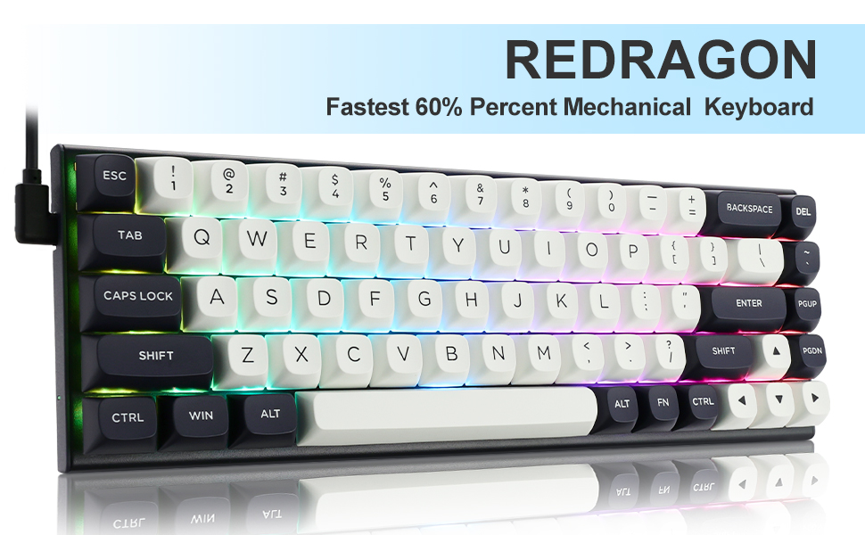 60% लेआउटले फंक्शन पङ्क्ति, नेभिगेसन क्लस्टर, र संख्यात्मक कीप्याड हटाउँछ, जसको परिणामस्वरूप सानो फुटप्रिन्ट हुन्छ। यो डिजाइनले माउसको आन्दोलनको लागि थप ठाउँ प्रदान गर्दछ, यसलाई सीमित डेस्क स्पेसको साथ गेमिङ सेटअपहरूको लागि आदर्श बनाउँछ।