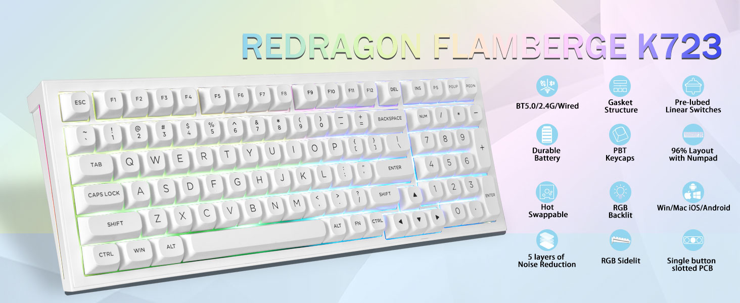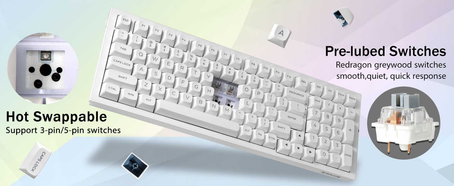 हट-स्वैप गर्न मिल्ने अनुकूलन किबोर्ड:स्विच र कीक्यापहरू स्वतन्त्र रूपमा प्रतिस्थापन गर्न सकिन्छ (कीक्याप/स्विच पुलर प्याकेजमा समावेश गरिएको छ)। हट-स्वैप PCB भएको यो अनुकूलन योग्य किबोर्डले प्रयोगकर्ताहरूलाई सोल्डरिङ समस्या बिना नै सजिलैसँग ३ पिन/५ पिन स्विचहरू बदल्न अनुमति दिन्छ। K723 मेकानिकल किबोर्डहरू प्रि-लुब्ड रैखिक स्विचहरूसँग सुसज्जित छन्, सहज टाइपिङ भावना र सुखद टाइपिङ ध्वनि ल्याउँछन्, रमाईलो खेलको लागि द्रुत प्रतिक्रिया प्रदान गर्दछ।