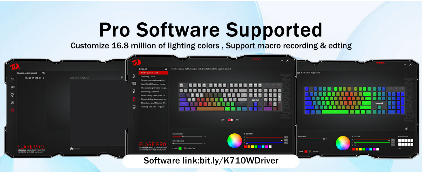 𝗣𝗿𝗼 𝗦𝗼𝗳𝘁𝘄𝗮𝗿𝗲 𝗦𝘂𝗽𝗽𝗼𝗿𝘁𝗲𝗱- आफ्नो नयाँ मोड र प्रभावहरू डिजाइन गर्न उपलब्ध सफ्टवेयर प्रयोग गरेर आफ्नो विकल्पहरू विस्तार गर्नुहोस्। धेरै कुशल काम र गेमिङका लागि विभिन्न कीबाइन्डिङ वा सर्टकटहरू भएका म्याक्रोहरू। सफ्टवेयर लिङ्क: bit.ly/K710WDriver।